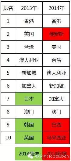 俄罗斯和巴西上榜是一个亮点,日本韩国落选十大有些意外。第10名也有报道说是西班牙的。