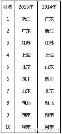 10大省份没有任何变化,只有少许的排名变化。