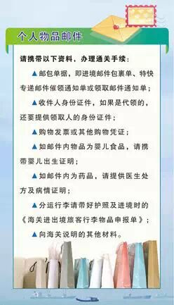 【说明】此类邮件,在收到邮政部门通知后,携带相关材料前往武定路458号洪安大厦1楼,办理海关手续。咨询电话:021-60153911