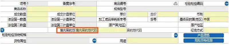 (四)进口货物需同时在“境内目的地代码”和“目的地代码”两个栏目录入相应的国内地区和县级行政区名称及代码;出口货物需同时在“境内货源地代码”和“产地代码”两个栏目录入相应的国内地区和县级行政区名称及代码。