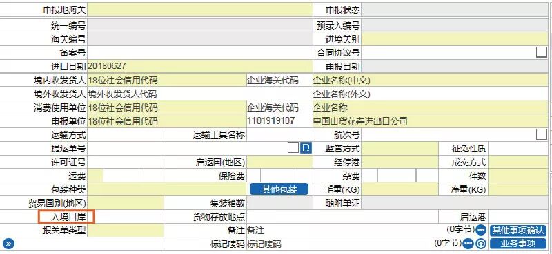 入境口岸按海关规定的《国内口岸编码表》选择填报进境货物从跨境运输工具卸离的第一个境内口岸的中文名称及代码;采取多式联运跨境运输的,填报多式联运货物最终卸离的境内口岸中文名称及代码;过境货物填报货物进入境内的第一个口岸的中文名称及代码;从海关特殊监管区域或保税监管场所进境的,填报海关特殊监管区域或保税监管场所的中文名称及代码。其他无实际进境的货物,填报货物所在地的城市名称及代码。