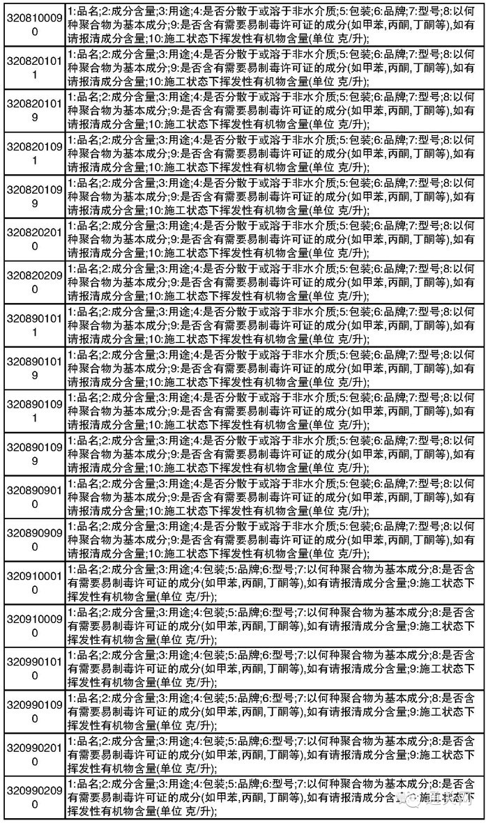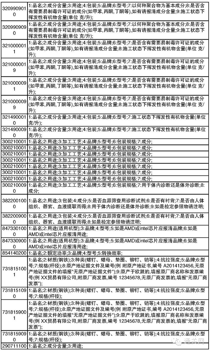 今日(3/13)更新3204110000、3204120000、3204130000、3204140000等税号的申报要素内容。如下