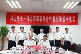 为贯彻落实《上海海关上海海事局合作备忘录》,共同加快推进上海航运中心建设,2014年6月19日下午,洋山港海事局与洋山海关在小洋山海事大楼共同签署合作备忘录。上海海事局刘亮副局长,上海海关张华鲁副关长出席签字仪式并发表了热情洋溢的讲话,洋山港海事局凌黎华局长,洋山海关马衍关长分别代表洋山港海事局与洋山海关签署合作备忘录。